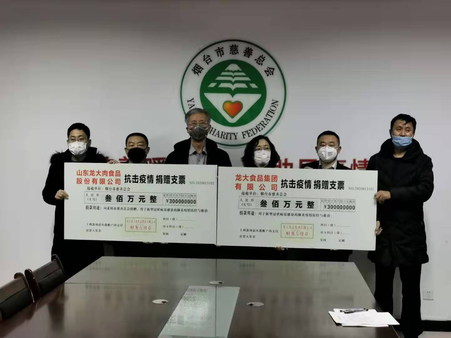龍大食品集團(tuán)有限公司和山東龍大肉食品股份有限公司 共捐贈600萬元助力新型冠狀病毒感染的肺炎疫情防控