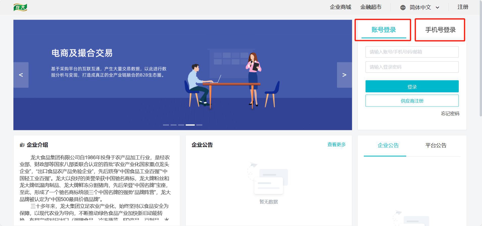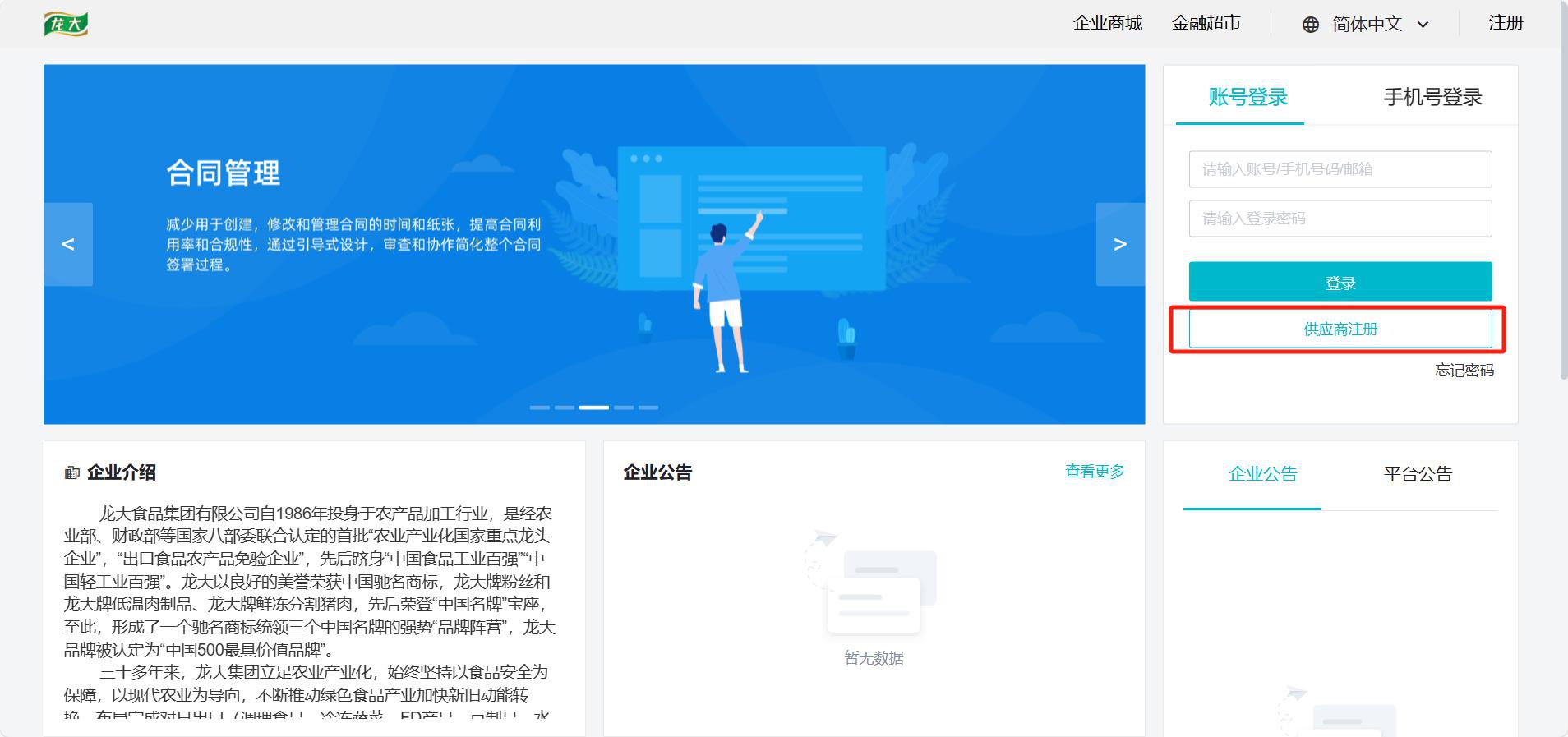二、龍大集團采購平臺注冊入口