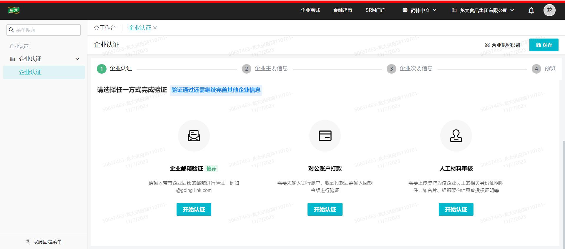三、龍大集團采購平臺注冊步驟說明